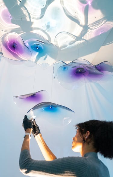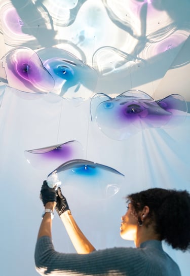 Tvorba je pro mě prostorem, kde se osobní výraz setkává se společnými tématy a sdílenou zkušeností — místem, kde mohu posouvat materiál, význam i estetiku vlastním směrem. Objekty jsou tradičně ručně foukány v českých hutích.